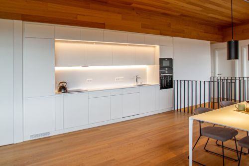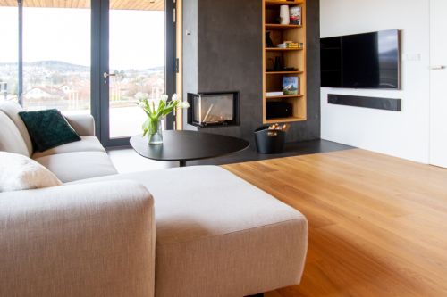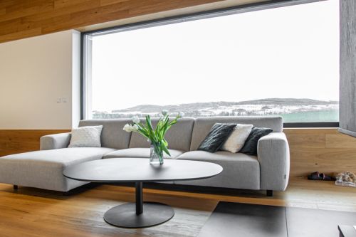 Dům je z exteriéru minimalistický a tento styl jsme chtěli ponechat i v interiéru. Zároveň jsme ale chtěli do interiéru vnést i útulnost a povědomí o tom, že se nacházíme na venkově a že dům slouží převážně k odpočinku a společným chvílím rodiny.