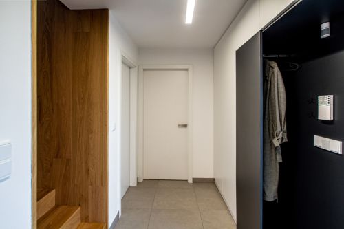 Dům je z exteriéru minimalistický a tento styl jsme chtěli ponechat i v interiéru. Zároveň jsme ale chtěli do interiéru vnést i útulnost a povědomí o tom, že se nacházíme na venkově a že dům slouží převážně k odpočinku a společným chvílím rodiny.